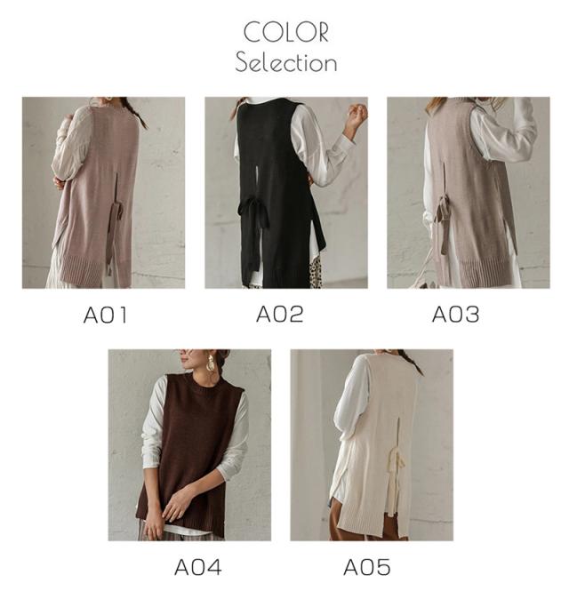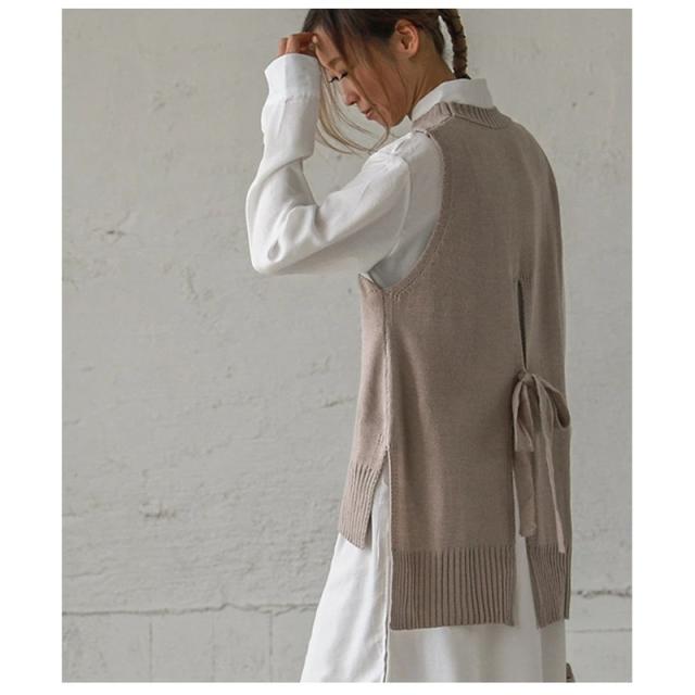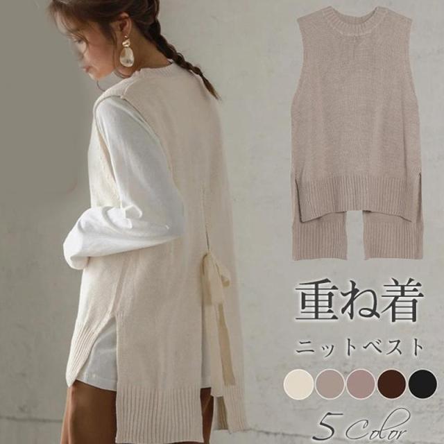 ベスト プルオーバー ノースリープ 重ね着 チョッキ ベストセーター ニット ジレ トップス レディース 春 バックリボン 韓国風 ゆったり 可愛い