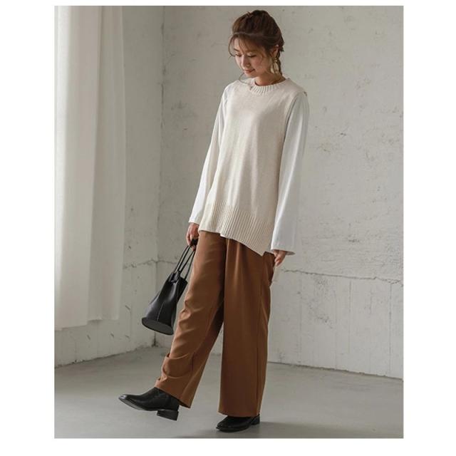 【キーワード】重ね着コーデ 秋 カジュアル レイヤードコーデ サイドスリット きちんと感 ニットウェア ショート丈 クルーネック 高校生 20代 30代 40代 50代 新作