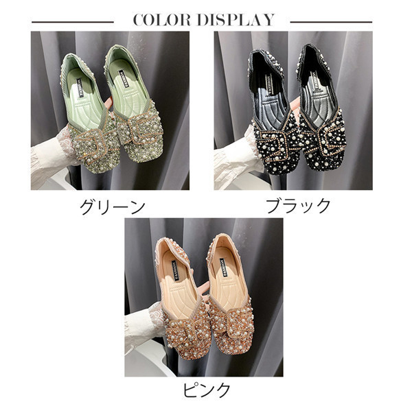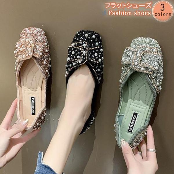 パンプス レディース フラットシューズ ぺたんこ フラット リボン ローファー 発表会 柔らかい キラキラ ローヒール Vカット 痛くない オフィス くつ 通勤