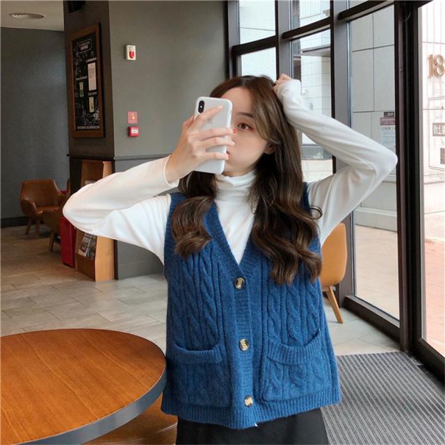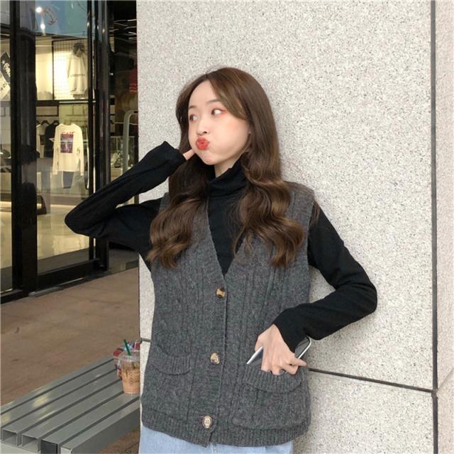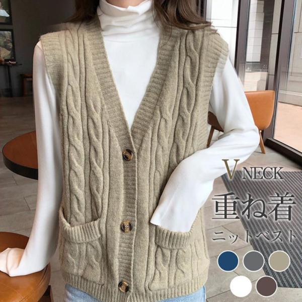 ベスト 重ね着 プルオーバー ノースリープ チョッキ ベストセーター ニット トップス レディース 春 カジュアル 韓国風 ゆったり vネック ジレ