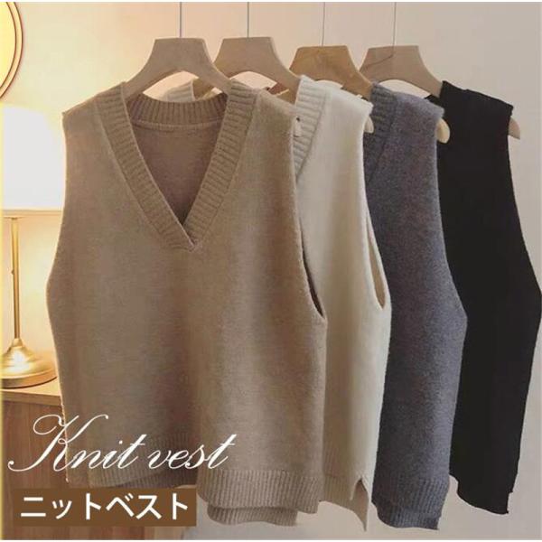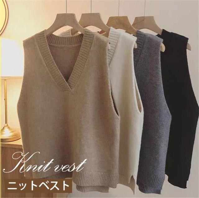 セール ニットベスト レディース チョッキ 無地 トップス ノースリーブ ゆったり インナー カジュアル シンプル 重ね着 秋冬 保温 ルームウエア