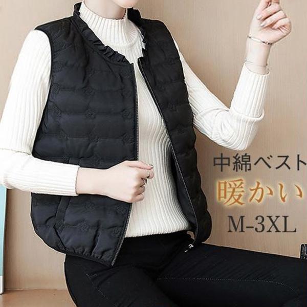 レディース ベスト キルティング 中綿 インナー 軽量 アウター 冬 防寒 中綿 フリル チョッキ ノースリーブ ジレ 大きいサイズ ダウンベスト 保温 防風 通勤 秋