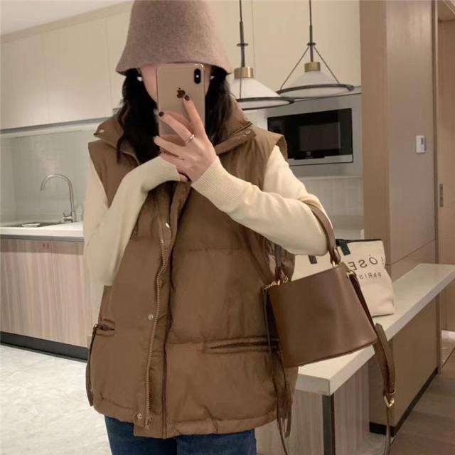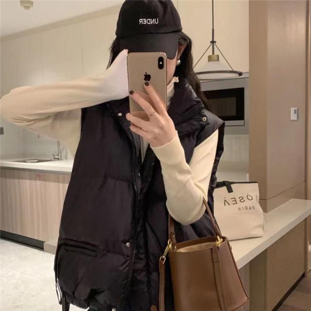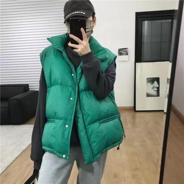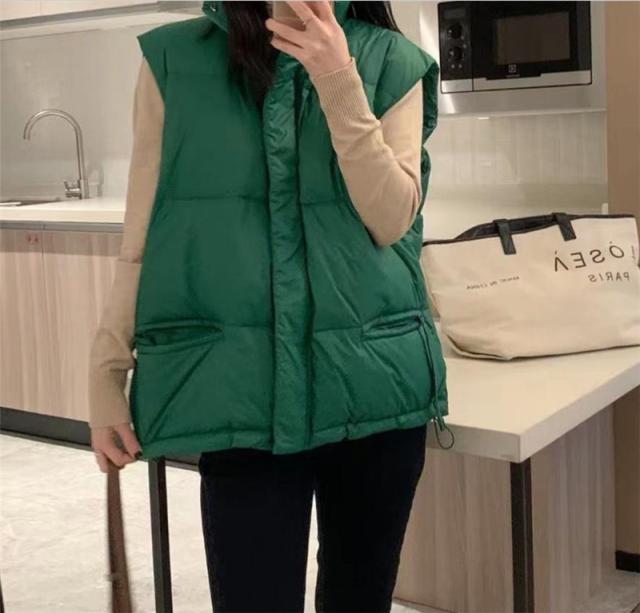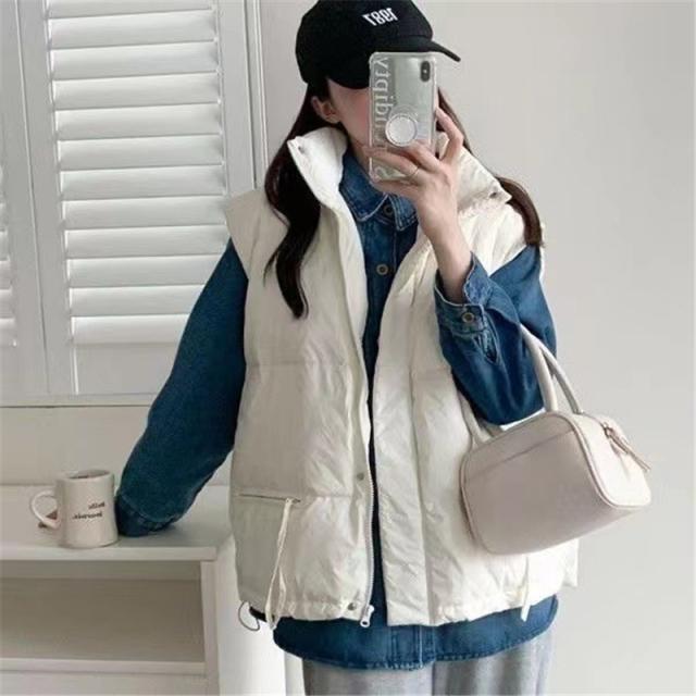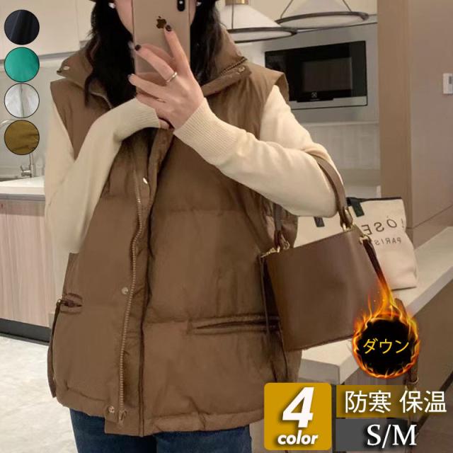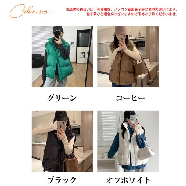 ダウンベスト レディース ベスト 袖なし トップス 無地 立ち襟 ショート丈 チョッキ ジレ カジュアル 厚手 コーデ ファション 防寒 アウトドア