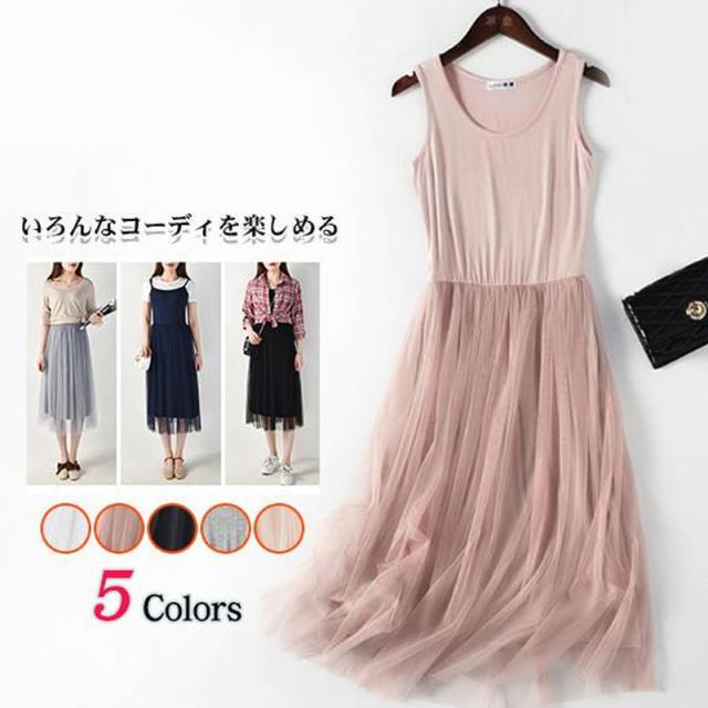 ペチコート キャミワンピース インナーワンピース 重ね着 チュールワンピース 無地 インナー 下着 透け防止 チュールスカート キャミソール キャミワンピ