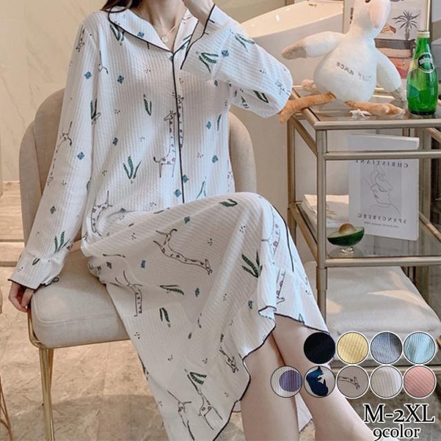 セール ネグリジェ レディース ナイトウェア ロング丈 長袖 ワンピース パジャマ シンプル ルームウエア 部屋着 カジュアル 春秋 おしゃれ 可愛い