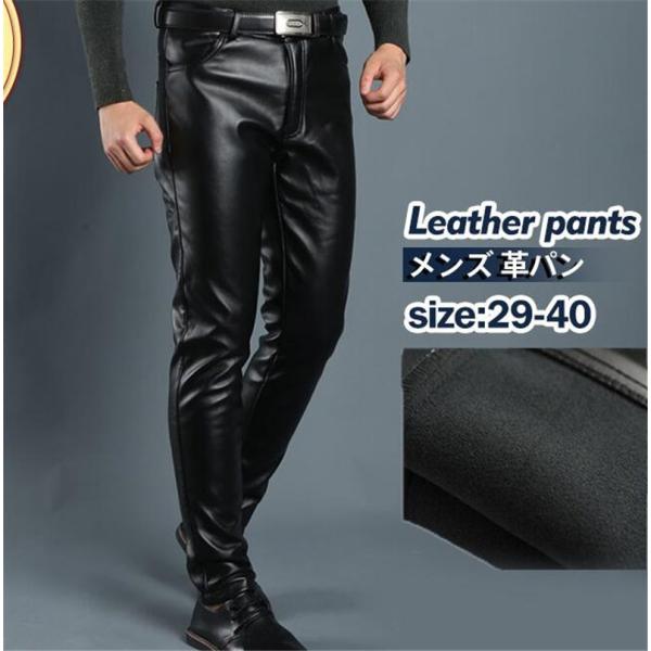 激安 レザーパンツ ボトムス メンズ 革パン バイクパンツ 防寒 メンズパンツ ライダー スキニー 無地 ストレッチ 防風 男性用 保温 伸縮性 厚手
