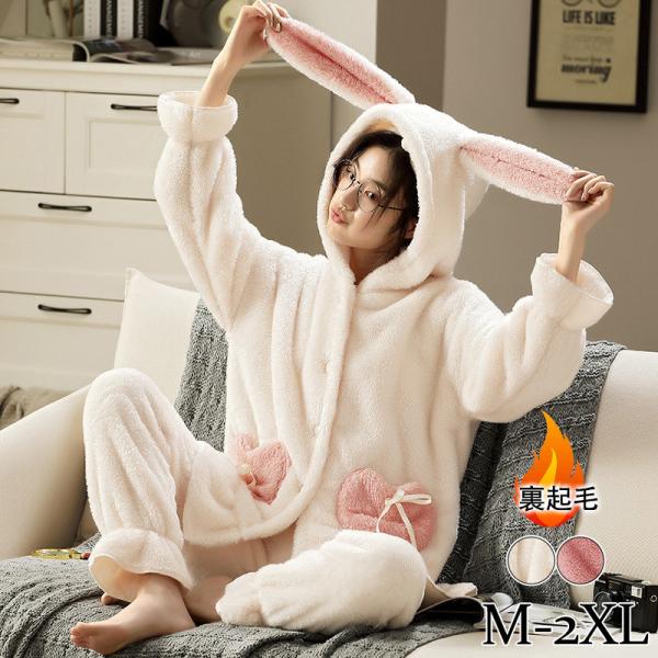 半額セール ネグリジェ レディース ナイトウェア ロング丈 長袖 ワンピース うさぎ 裏起毛 ルームウエア カジュアル もこもこ 厚手 可愛い 寝間着