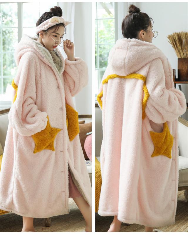 セール ネグリジェ レディース ナイトウェア ロング丈 長袖 ワンピース 星柄 シンプル ルームウエア 部屋着 カジュアル 秋冬 カップル 寝間着