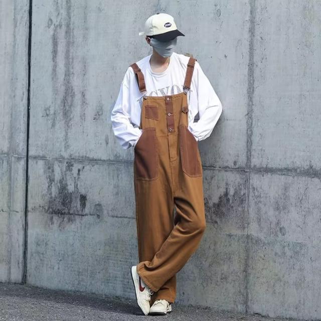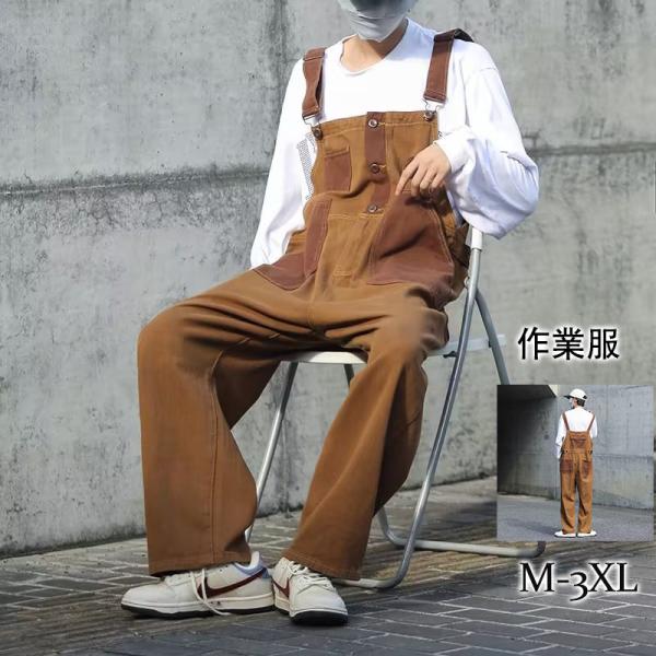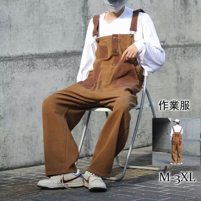 激安 オーバーオール メンズ サロペット ゆとり ワーク カーゴ アメカジ オールインワン ストリート系 作業服 春秋 ブラウン シンプル カジュアル