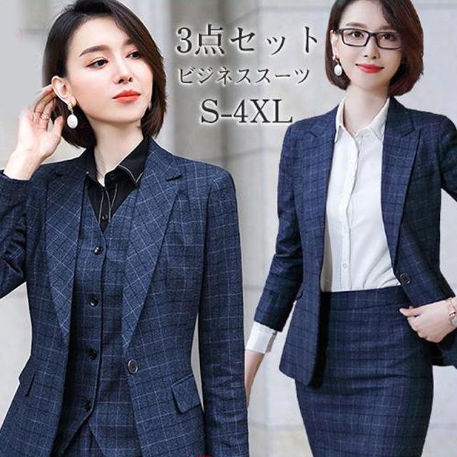 スーツ リクルート ビジネススーツ チェック柄 3点セット フォーマル スカートスーツ ビジネス レディース 大きいサイズ 通勤 面接 オフィス OL