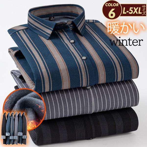 セール カジュアルシャツ メンズ シャツ 裏起毛 ストライプ柄 ネルシャツ 長袖 カジュアル ゆったり 厚手 保温 父の日 プレゼント コーデ 普段着