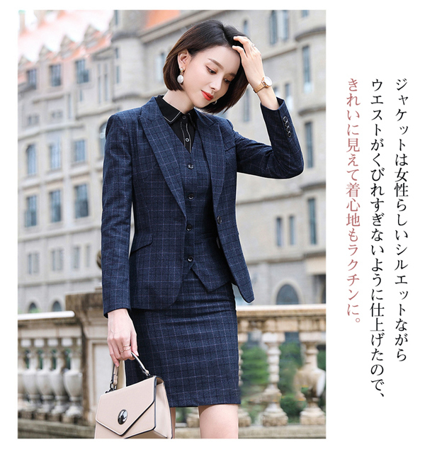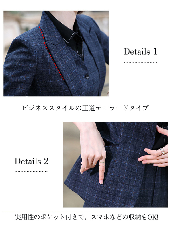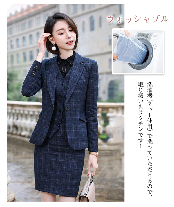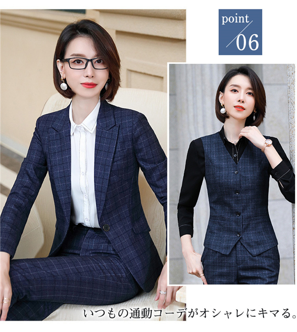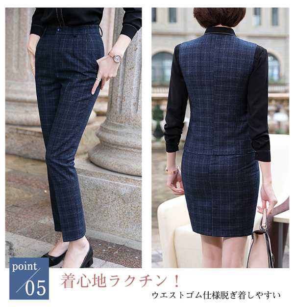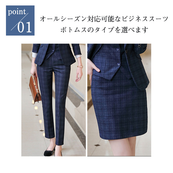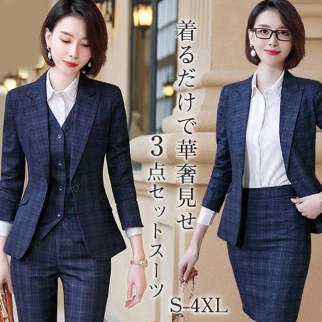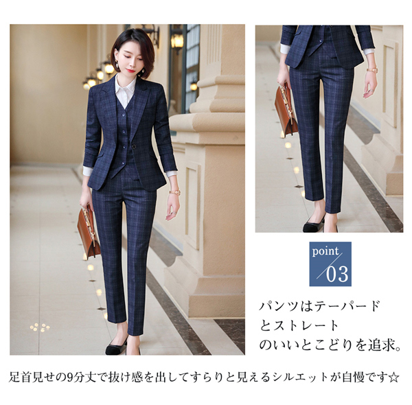 スーツ パンツスーツ リクルート ビジネススーツ 3点セット フォーマル ビジネス チェック柄 レディース 大きいサイズ 通勤 面接 行事 オフィス
