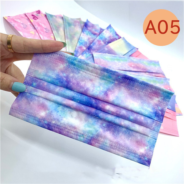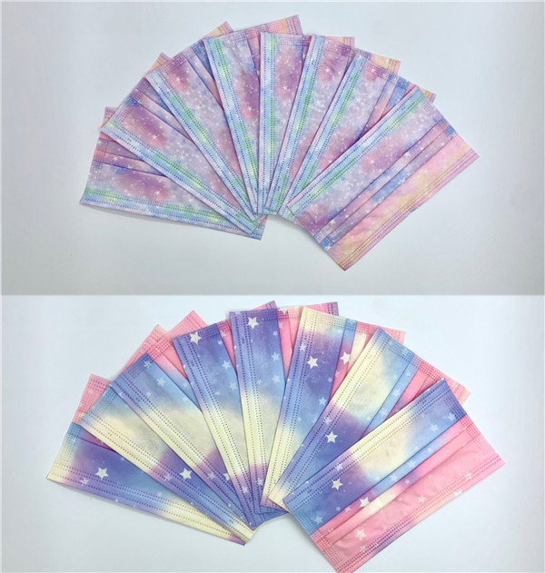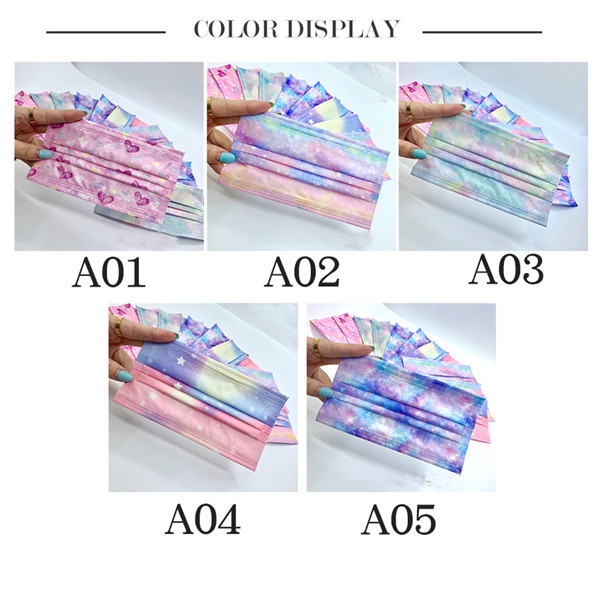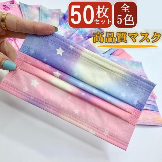 マスク 50枚 使い捨て カラーグラデーション 星柄 大人 不織布 使い捨てマスク カラー 血色 星空 柄 可愛い 3層構造 不織布マスク UVカット 防塵 お洒落