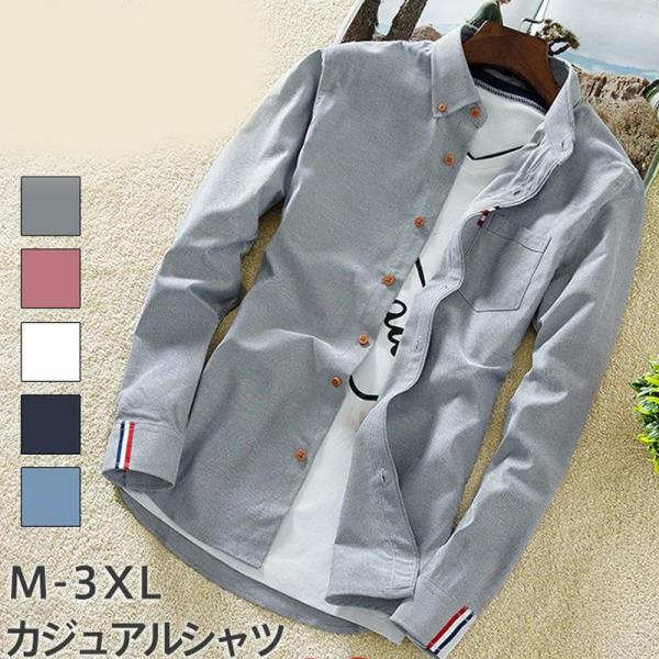 カジュアルシャツ 白シャツ メンズ シャツ Yシャツ ワイシャツ オックスフォード 長袖 ビジネス ボタンダウン スリム 通勤 春秋 トップス