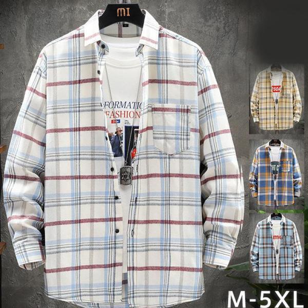 カジュアルシャツ チェック柄 メンズ シャツ Yシャツ ワイシャツ オックスフォード 長袖 アウター ボタンダウン スリム 通勤 春秋 トップス