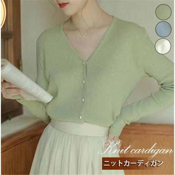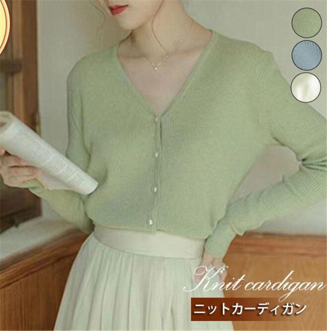 セール ニットカーディガン レディース カーディガン 前開き トップス 無地 Vネック アウター カットソー ゆったり 羽織り 秋服 シンプル 上品