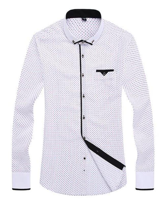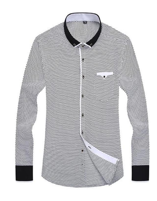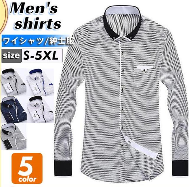 激安 ワイシャツ メンズ 長袖 開襟 ボタンダウン ビジネス プリント 水玉模様 カジュアル 大きいサイズ スリム レギュラー きれいめ 春秋 大人