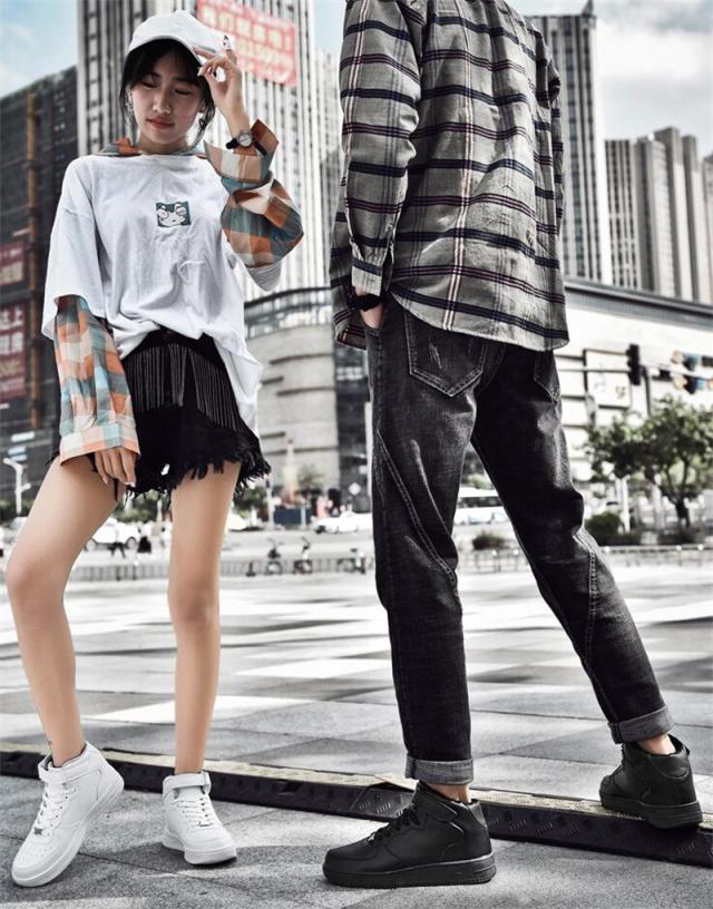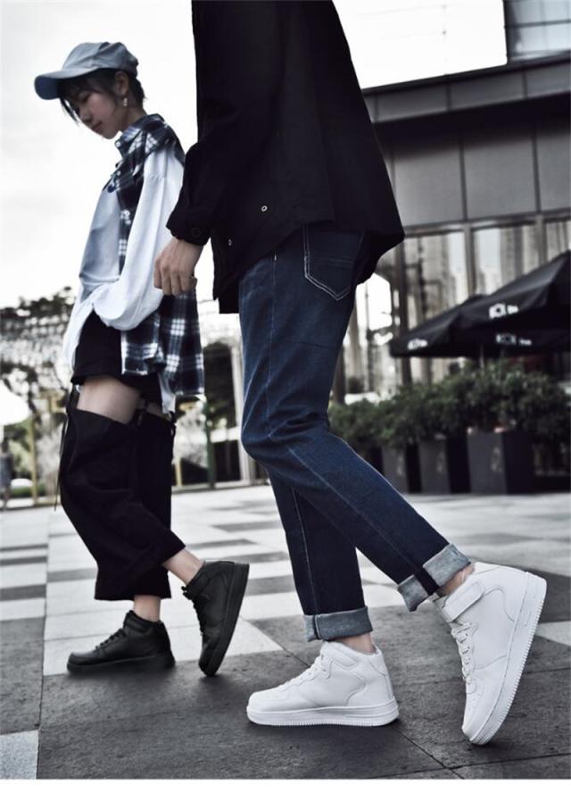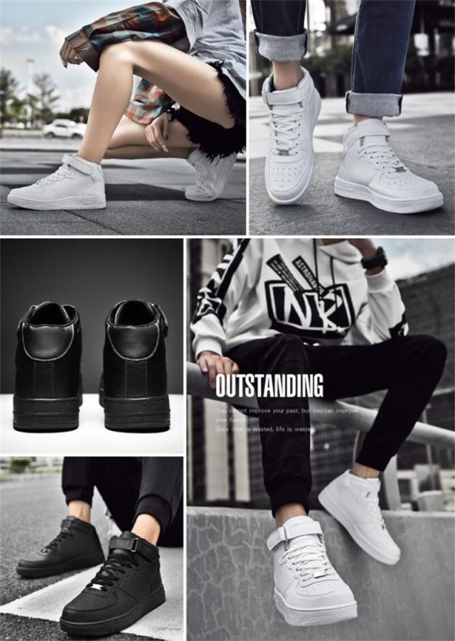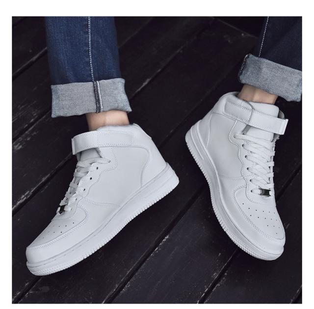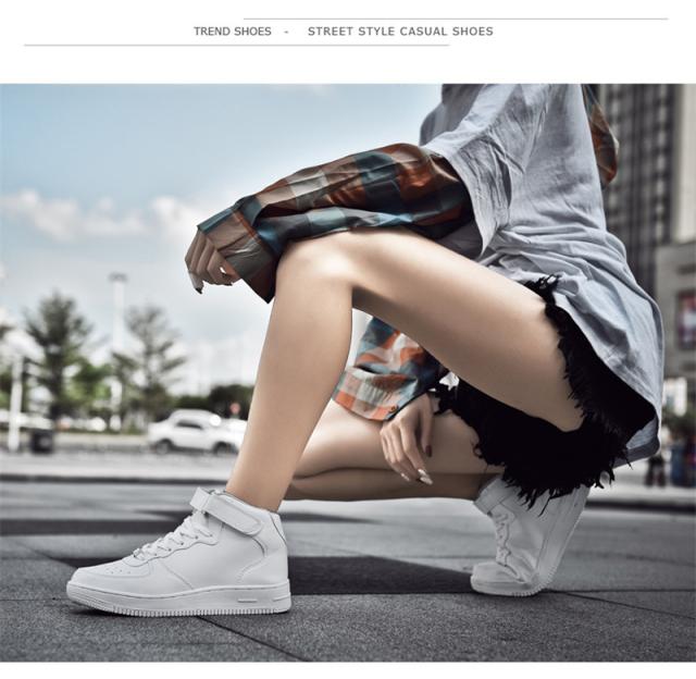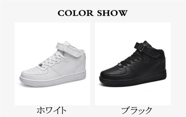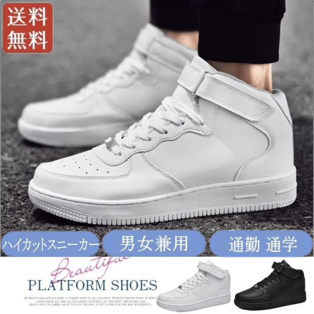 スニーカー メンズ レディース カップル 男女兼用 ハイカット ランニングシューズ マジックテープ ストラップ カジュアル 厚底 白 黒 通勤 通学 ストリート