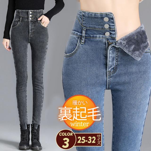 デニムパンツ レディース 裏起毛 パンツ デニム スキニー ボトムス ハイウエスト カジュアル スリム 着痩せ ストレッチ 保温 通勤通学 おしゃれ