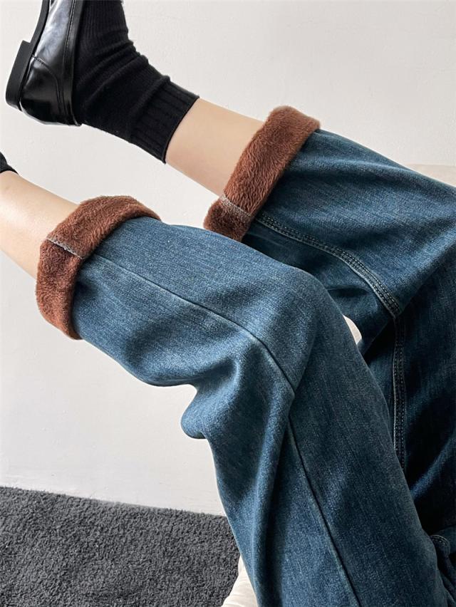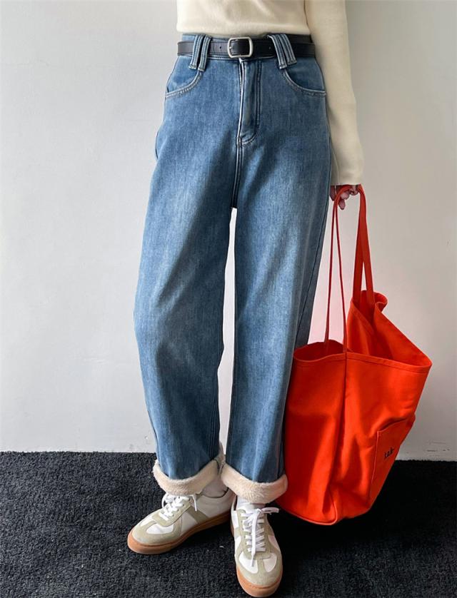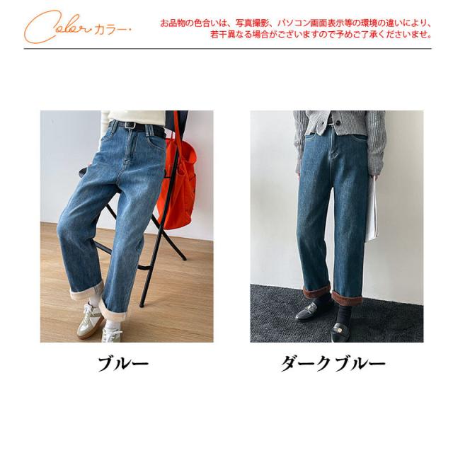 デニムパンツ レディース 裏起毛 パンツ デニム ワイド ボトムス ハイウエスト カジュアル ゆったり 着痩せ ストレート 保温 通勤通学 おしゃれ