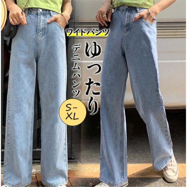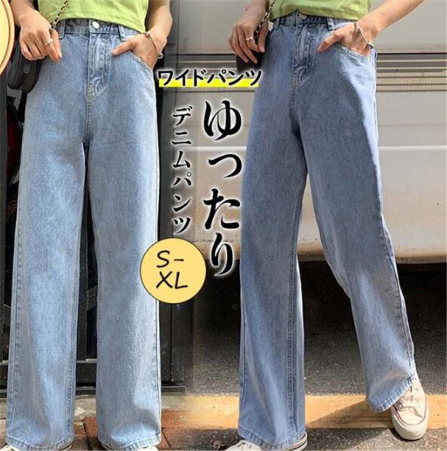 デニムパンツ レディース ワイドパンツ ハイウエスト ボトムス カジュアル ストレッチ 大きいサイズ ゆったり 体型カバー 仕事 旅行 ロング 大人