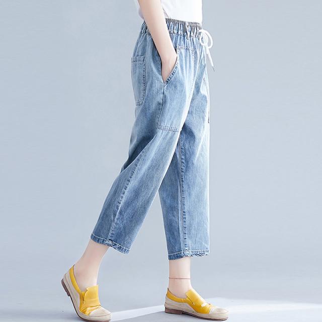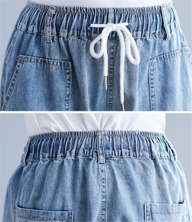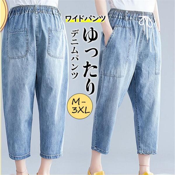デニムパンツ レディース ワイドパンツ ウエストゴム ボトムス カジュアル ストレッチ 大きいサイズ ゆったり 体型カバー 着痩せ 旅行 ナチュラル