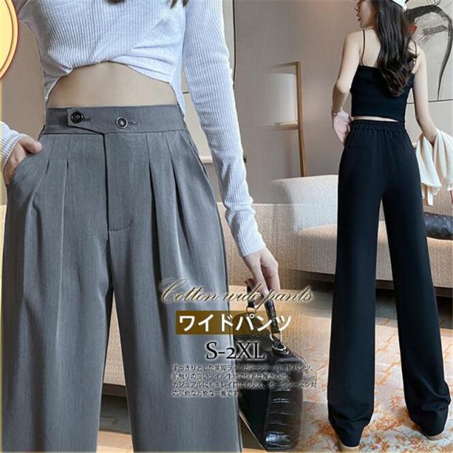 激安 スラックス ワイドパンツ レディース ボトムス ビジネスパンツ 無地 ハイウエスト エレガント ゆったり カジュアル きれいめ 春秋 おしゃれ
