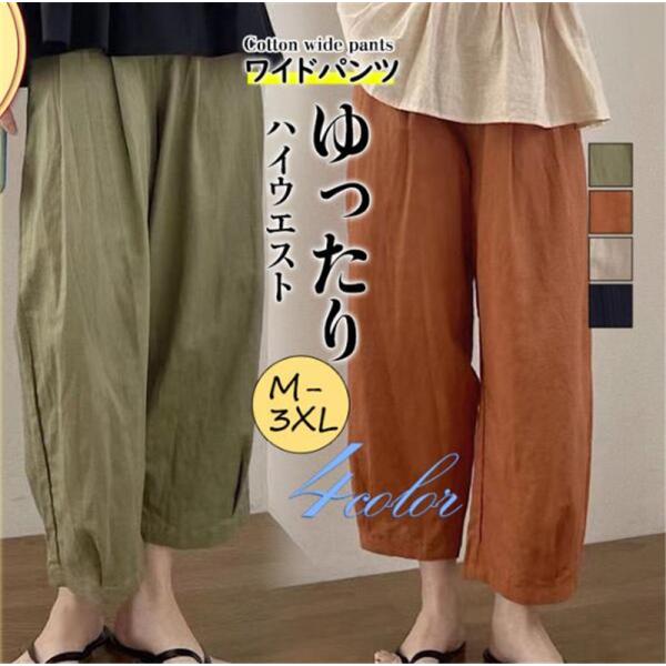 ワイドパンツ レディース ウエストゴム ボトムス カジュアル ストレッチ ゆったり ひんやり 春夏 無地 快適通気 仕事 旅行 ロング 大人