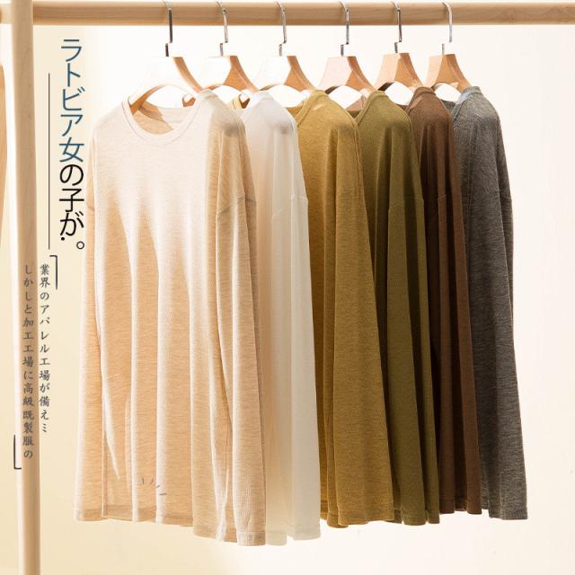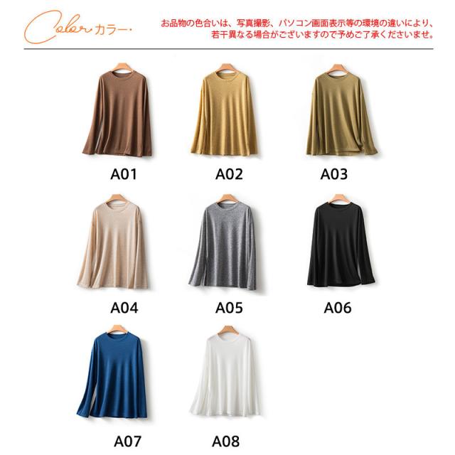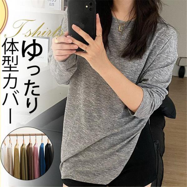 Tシャツ 長袖 レディース カットソー トップス 無地 シンプル カジュアル 重ね着 レイヤード 薄手 ゆったり おしゃれ 春秋 上品 エレガント