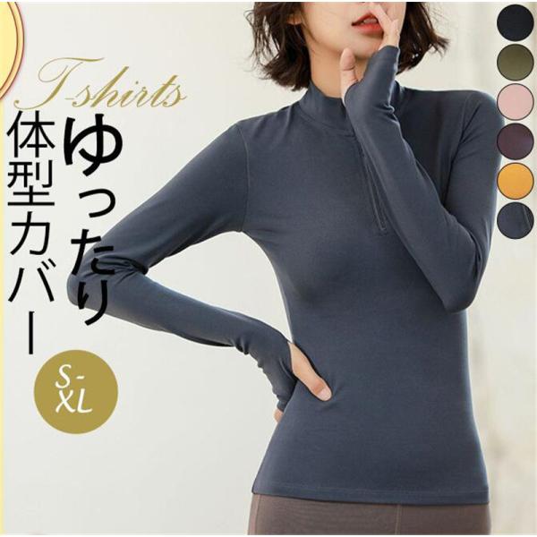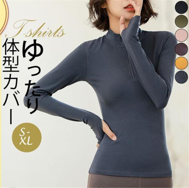 激安 カットソー Tシャツ 長袖 レディース トップス 無地 シンプル ファスナー スポーツ ランニング トレーニング スリム おしゃれ 春秋 速乾