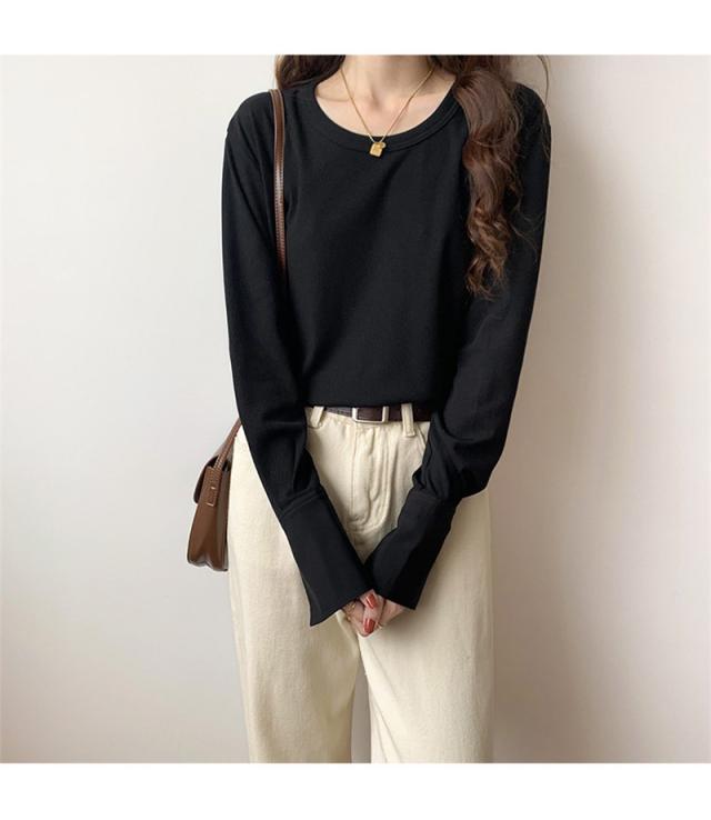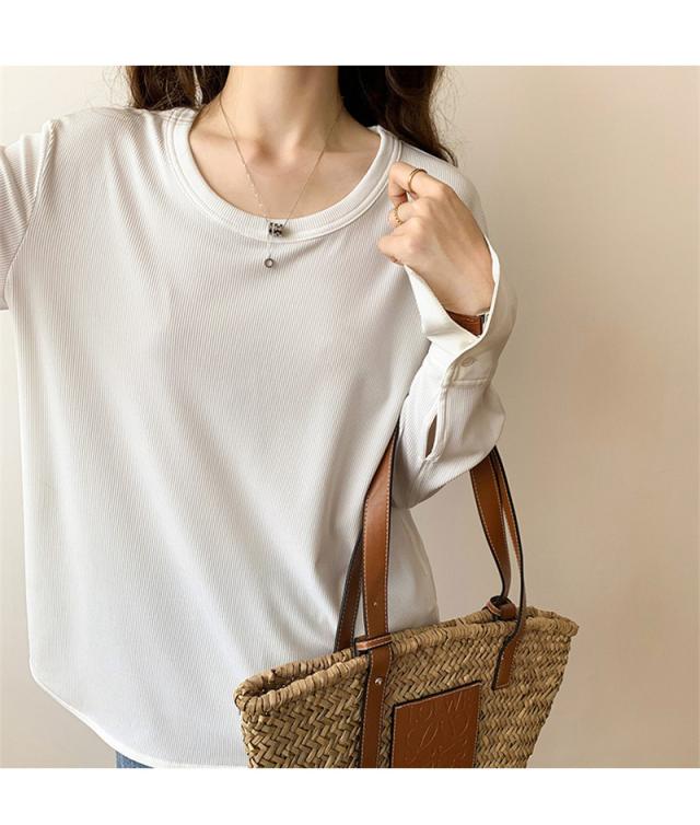 Tシャツ カットソー 長袖 レディース トップス 無地 シンプル カジュアル 重ね着 エレガント 薄手 ゆったり おしゃれ 春秋 母の日 プレゼント