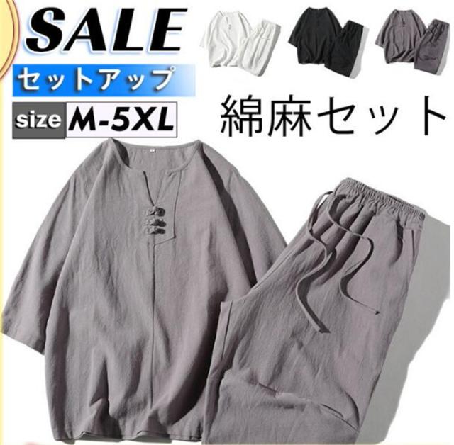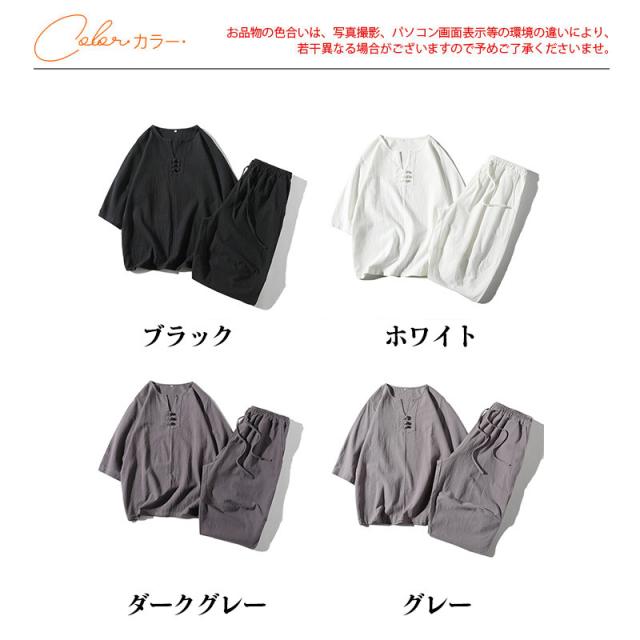 セットアップ メンズ 半袖 綿麻セット 七分袖 薄手 カジュアル スポーツ ワイド ルームウェア おしゃれ ゆったり 夏用 無地 部屋着 父の日