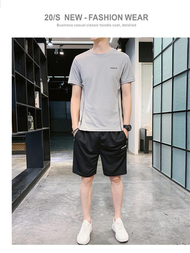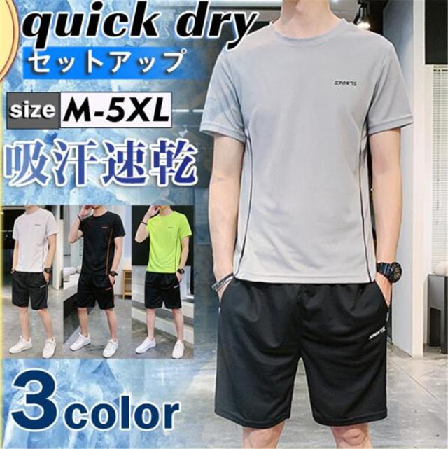 セットアップ メンズ 半袖 上下セット 吸汗速乾 ランニングウェア スポーツ ジム 英字 ルームウェア 涼しい 薄手 部屋着 夏服 通気性 ジョギング