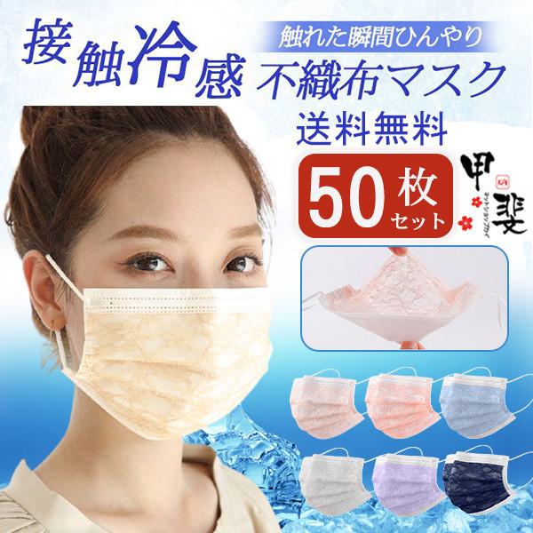 マスク 不織布 チュールマスク 花柄 レース柄 50枚 カラーマスク 夏 可愛い 柄入り 柄 冷感 使い捨て 立体 四層構造 おしゃれ 大人 保護対策