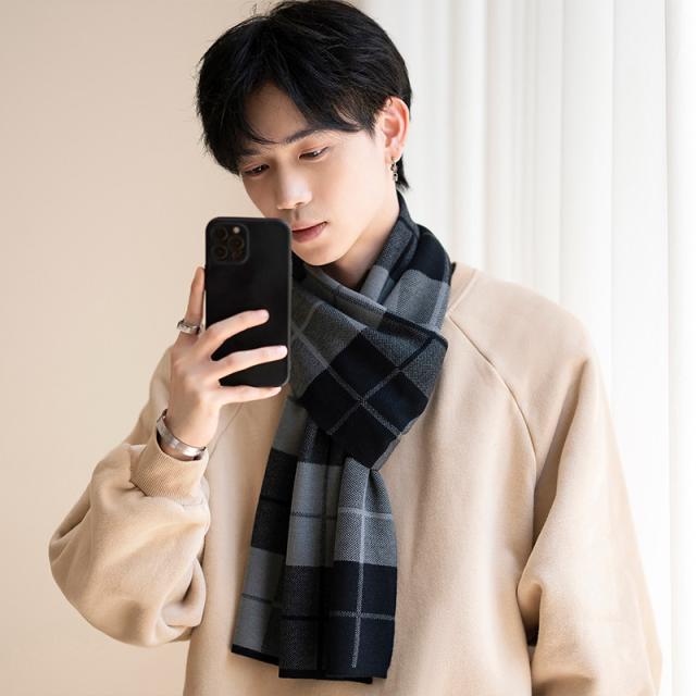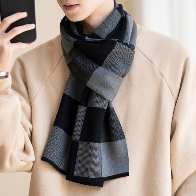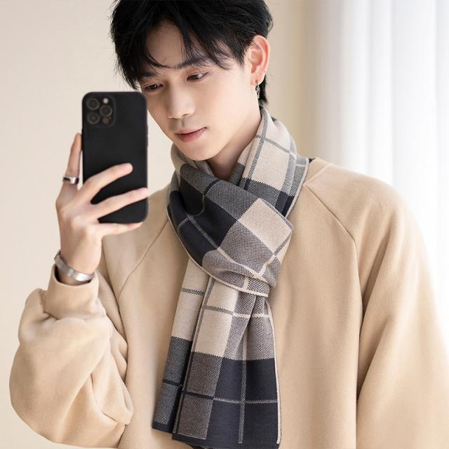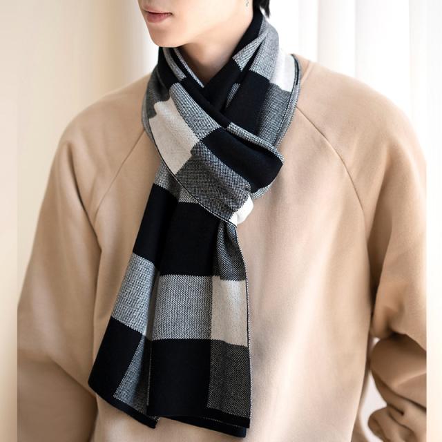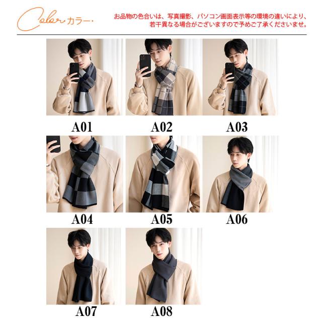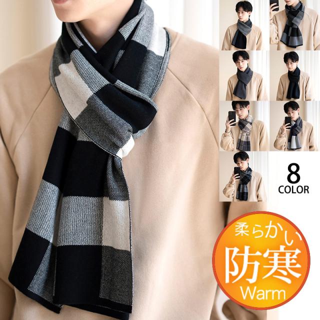 マフラー メンズ ロング 大判 スカーフ ストライプ柄 チェック柄 シンプル 保温 韓国風 カジュアル おしゃれ 防寒 秋冬 厚手 フォマール 贈り物