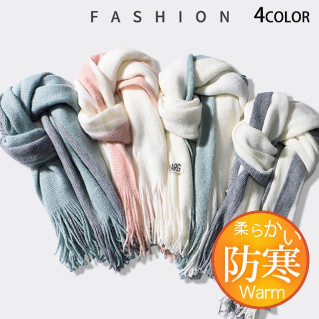 激安 マフラー メンズ ロング 大判 スカーフ バイカラー フリンジ 保温 男女兼用 カジュアル ペア 秋冬 厚手 通勤通学 カップル ファション