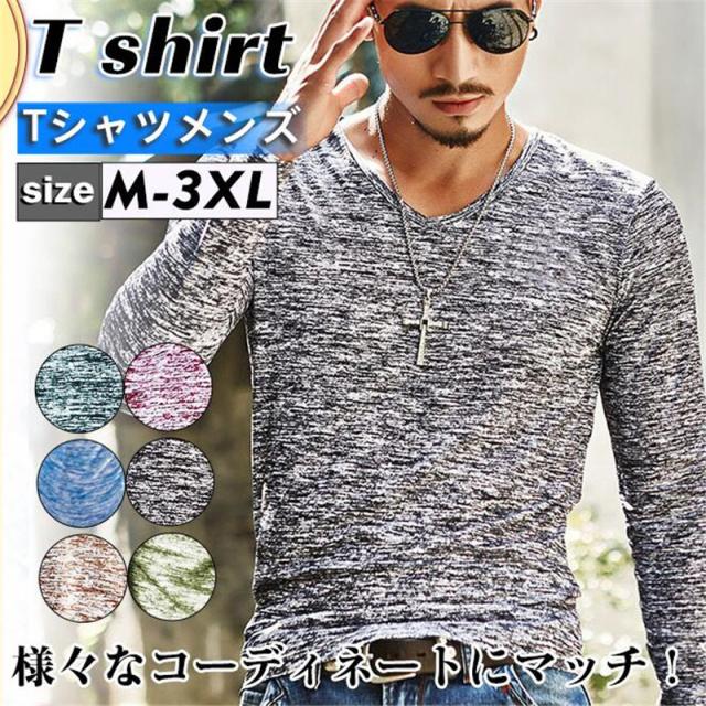 半額セール Tシャツ メンズ ロングTシャツ 長袖 Vネック カットソー トップス プリント カジュアル アウトドア スリム 着痩せ 春秋 おしゃれ