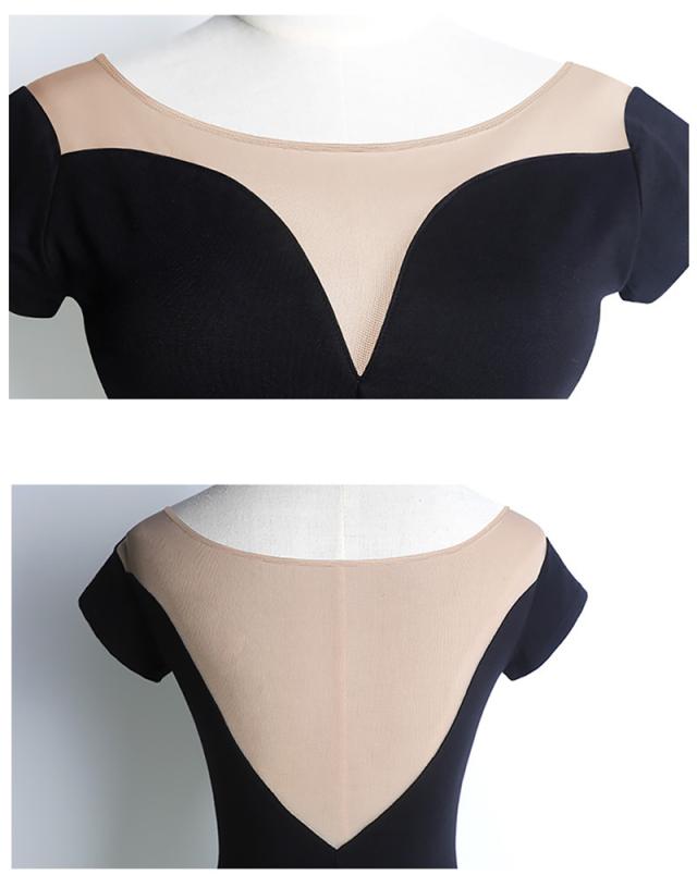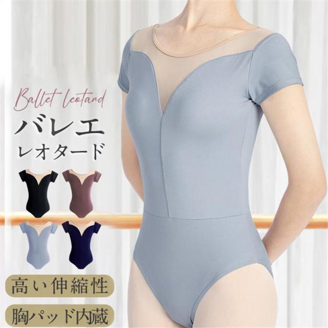 バレエレオタード 大人用 バレエトップス バレエウェア レッスン着 演出服 無地 スカートなし ストレッチ バレー メッシュ 半袖 ガールズ 伸縮性
