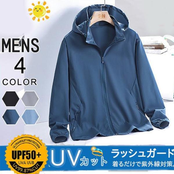 ラッシュガード パーカー UVカット UVパーカー 接触冷感 薄手 通気 吸汗速乾 紫外線対策 大きいサイズ 長袖 日焼け防止 水着用 フード付き