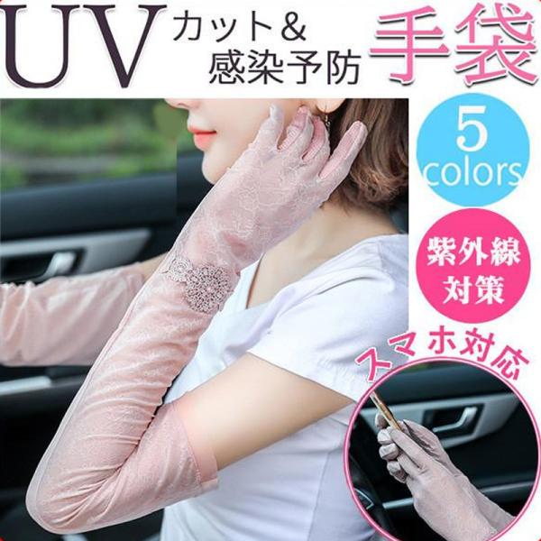 アームカバー UV手袋 スマホ対応 紫外線対策 レース柄 日焼け止め UVケア UV対策 UVカット 接触冷感 花柄 グローブ 日焼け止めカバー 冷感