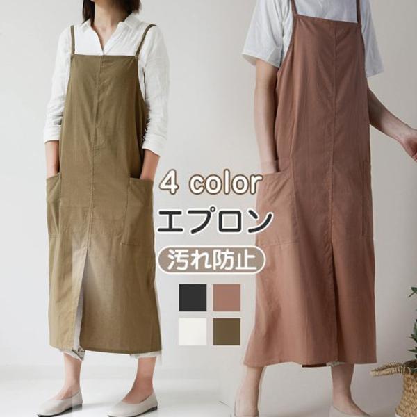 エプロン 胸当て ロング カフェ 保育士 ガーデニング 調理 北欧 飲食店 ワンピース チュニック エプロンドレス 前結び 家事 料理 汚れ防止