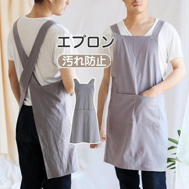エプロン 胸当て 無地 カフェ 保育士 調理 北欧 飲食店 チュニック バッククロス ワンピース リネン レディース 家事 料理 汚れ防止