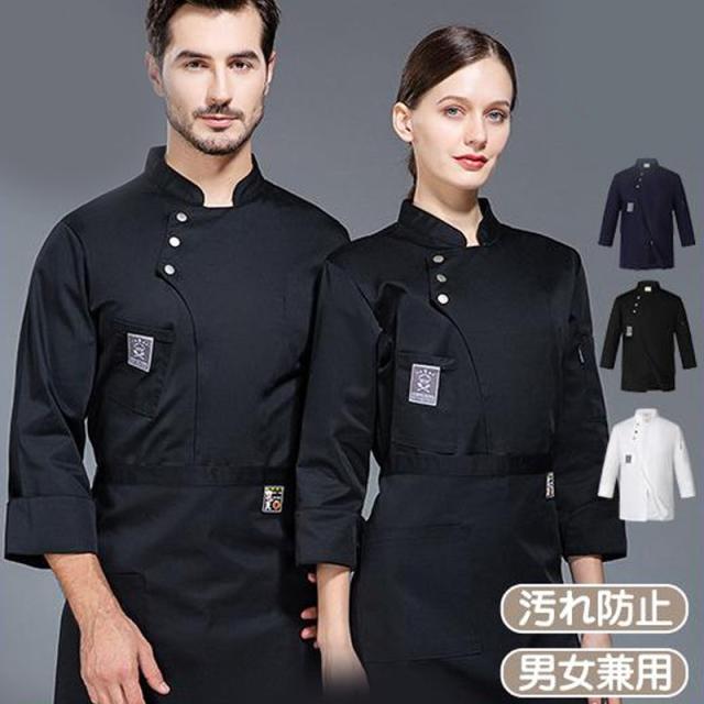 コックコート 飲食店 コック服 ユニフォーム シェフ 7分袖 男女兼用 調理士 コックジャケット 調理服 仕事着 厨房服 長袖 白 黒 料理人 制服