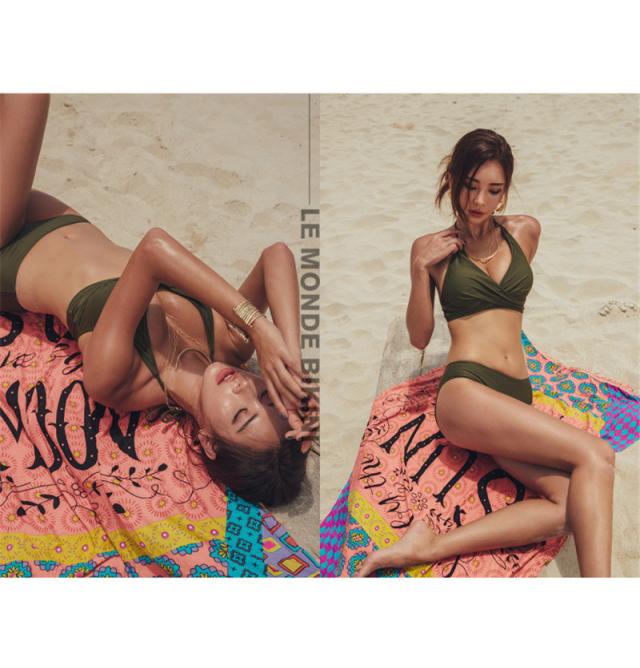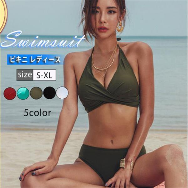 激安 レディース ビキニ 2点セット スイムウェア セクシー ホルター セパレート 胸パッド ワイヤー無 おしゃれ 無地 海水浴 ビーチ 夏 温泉