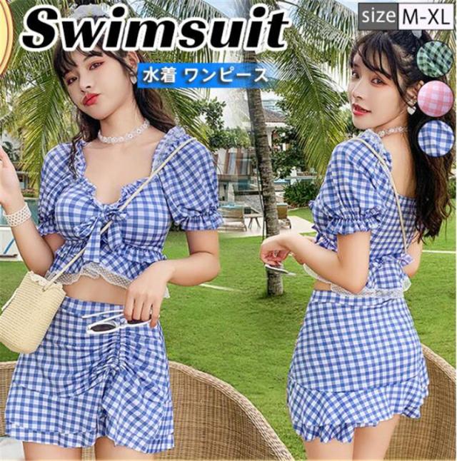 セール 水着 レディース 2点セット スイムウェア セクシー チェック柄 セパレート 胸パッド ワイヤー無 エレガント 温泉 海水浴 ビーチ 夏休み