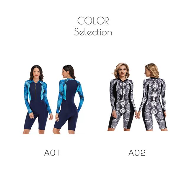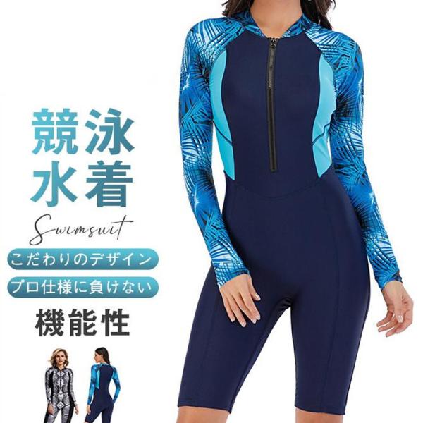 フィットネス水着 レディース オールインワン 競泳水着 温泉 スイムウェア フィットネス 水着 女性 長袖 体型カバー 練習用 短パン ファスナー