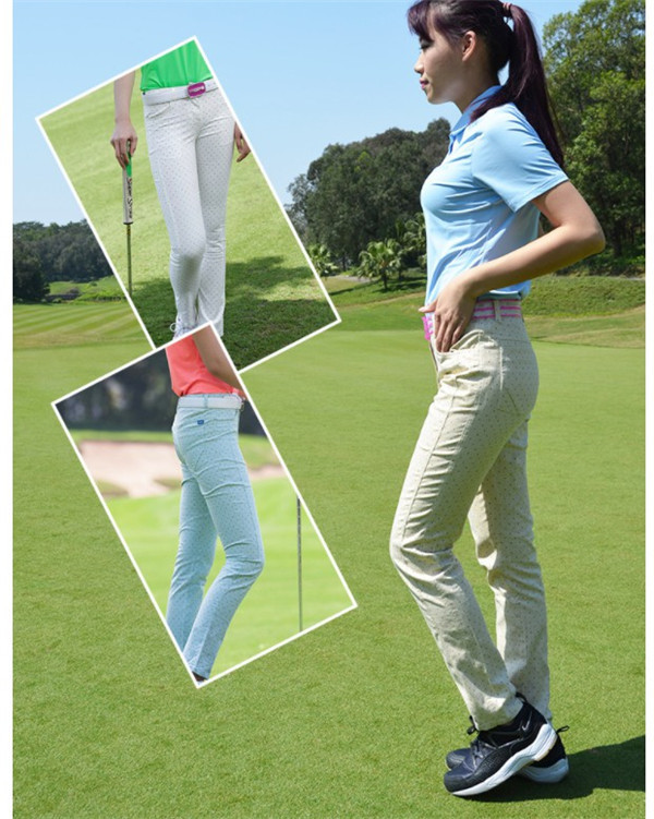 ゴルフウェア ゴルフパンツ カジュアル ボトムス スポーツ GOLF ゴルフ 運動パンツ レディース パンツ ドット柄 リネン おしゃれ