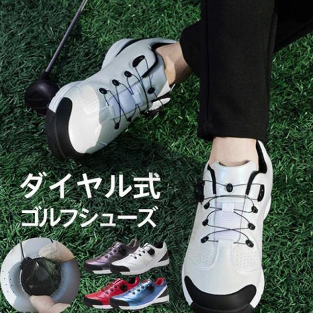 ゴルフシューズ メンズ ダイヤル式 スパイク靴 レディース シューズ スニーカー ゴルフ 革靴 運動靴 防水 耐滑 通気 スポーツ くつ 滑る防止