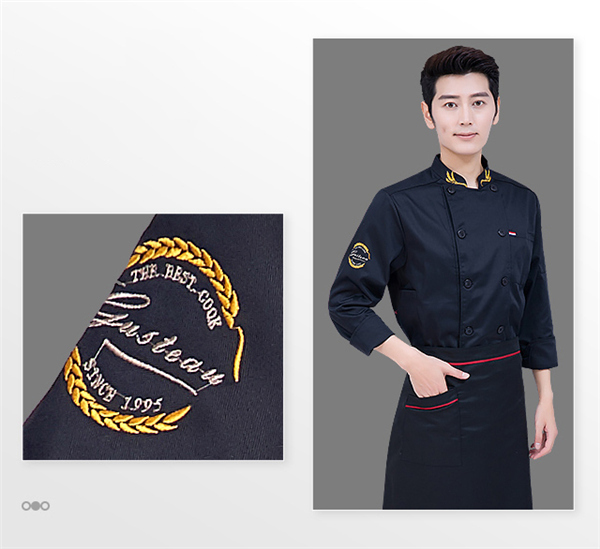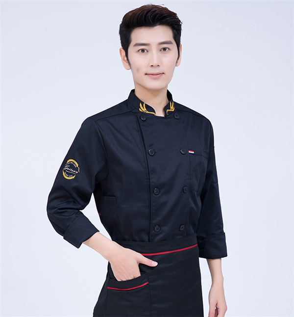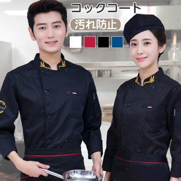 コックコート 飲食店 コック服 ユニフォーム シェフ 7分袖 男女兼用 調理士 コックジャケット 調理服 仕事着 厨房服 長袖 白 黒 料理人 制服