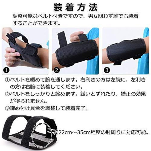 サイズに関わらず、自分の肘の大きさに合わせて調整ができ、誰でも使えます。
